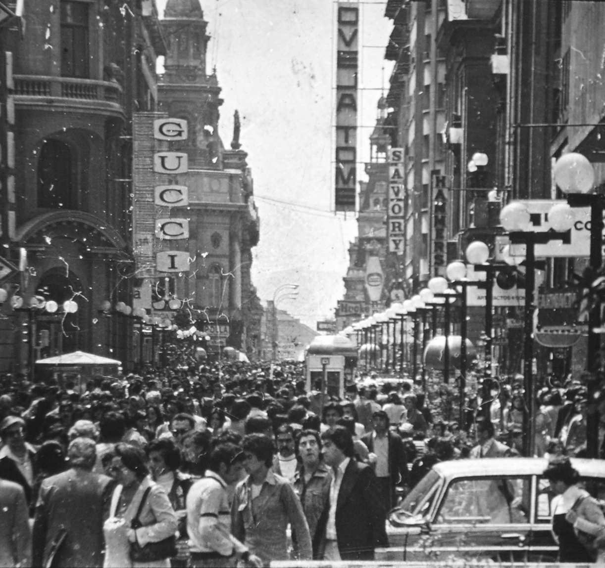 El sol decaía en el ocaso fin del día. Con fuerza cuidadosa, mamá aprehendía mi brazo con fuerza. El paseo Ahumado congestionado, se abría a la presencia de nuestra unión. Personajes característicos, se presentaban, el oficinista estresado, la mujer en alerta, el viejo y muchos otros que miraban con sus ojos desorbitados y desnaturalizados. En ese momento le pregunté: