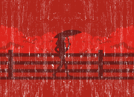 Ella rompió el silencio. Un paraguas negro y un vestido rojo que solo le dejaba al descubierto sus rodillas desnudas y pies. “¡Gelatina de fresa!”, gritó eufórica. Elegante, avanzaba lenta y descalza. Llevaba una escopeta y un bolso de piel con munición. Miró a la niña y le disparó en la piruleta. “¡Gelatina de fresa!”. Cargó dos cartuchos y disparó a las muñecas de la vieja con bolsas de plástico. “¡Gelatina de fresa!”. Cargó y disparó a la entrepierna del viejo. “¡Gelatina de fresa!”. Apuntó y alcanzó las piernas del atleta. “¡Gelatina de fresa!”. Hundió sus pies en la carretera y gritó. Y disparó. Y gritó y disparó, y gritó y disparó y disparó y disparó, y se disparó.