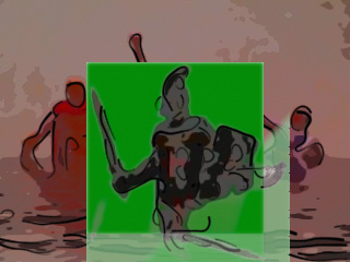 Al día siguiente, volvían a verse las caras vencidos y vencedores, como si nada hubiese pasado, los mismos personajes; ya sin el recuerdo de las heridas sufridas un día anterior en el campo de batalla. Las heridas virtuales del soldado medieval, un día hicieron mella en su humanidad costándole la pérdida de su cabeza. La solución para echar a rodar a este caballero andante por los caminos de las mil batallas, era resolver el problema; colocándole la cabeza en su lugar y cerciorándose que se asegurara en su cuello de una manera firme. Esta decisión no pudo ser más justa y sensata, su cabeza fue unida a través de una aguja insertada en su cabeza que la unía al cuello.