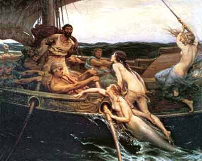 Ya la negra nave como una nube pasaba sobre las cabezas adornadas de largos cabellos cuando aquella que escondida estaba, escuchó los tristes lamentos de los argivos. Desconocía aquella lengua pero sintió compasión por los lamentos que clamaban por la patria perdida donde se mezclaban el amor de los aqueos por sus mujeres e hijos con el ímpetu del viril deseo, del mismo en que dos sustancias de materia diversa pueden forman en armonía una sola. Fue así que la pequeña sintió amor por vez primera. Y así como la piedra imán atrae las sustancias que le son afines así la sirena fue llevada a la nave. Apenas su cabeza asomó del agua vio el barco y en él a los hermosos hombres de vivos ojos y broncíneas corazas. Hechizada por la visión, los miró durante largo tiempo sin ser vista por ellos hasta que su rostro se puso lívido. Tenía que regresar enseguida al cobijo del reino de Poseidón pero, atenazada por febril deseo, no podía dejar de respirar el aire que envenenaba su cuerpo. Empezó a prorrumpir entonces en terribles alaridos, aún de sus hermanas no escuchados quienes con renovado espanto vieron el hermoso cuerpo descomponerse en mil grotescas figuras, la cola cortar el agua, los miembros agitarse cual penetrados de agudas astas. Las sirenas se lanzaron entonces veloces en ayuda, surcando raudas el agua, pero ya la nave se alejaba arrastrando consigo su funesta sombra mientras que la náyade descendía lentamente al lecho del mar.